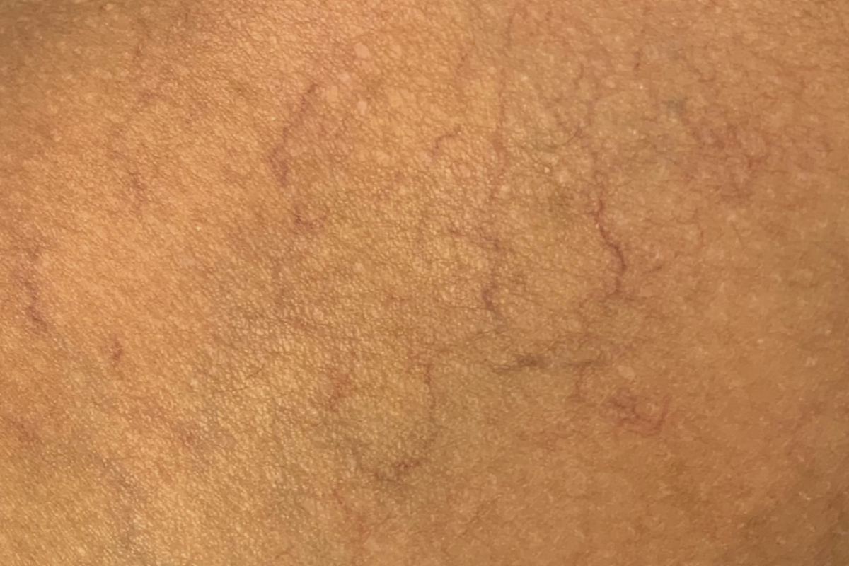 Las arañas vasculares, esos pequeños grupos de venas coloridas en forma de telaraña que suelen aparecer en los muslos, pantorrillas, región pélvica y detrás de las rodillas, son venas dañadas con sangre atrapada en su interior. Cuando las válvulas de las venas se debilitan, la sangre puede fluir en sentido inverso y acumularse en la vena, lo que puede provocar la formación de arañas vasculares y sus "primas": las venas varicosas, que son más gruesas, retorcidas y similares a cuerdas.